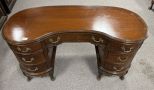 Mid 20th Century Chinese Chippendale Mahogany Kidney Desk, light scratches on finish, burl, 30"h., 52"w. Mid 20th Century Chinese Chippendale Mahogany Kidney Desk, light scratches on finish, burl, 30"h., 52"w.
