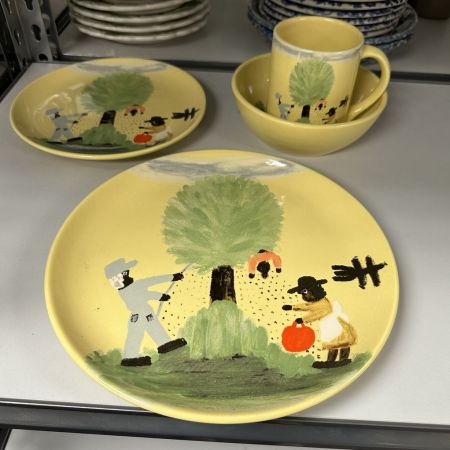 Clementine Hunter Collection Ceramic Pottery, Location Right Metal Shelves Clementine Hunter Collection Ceramic Pottery, Location Right Metal Shelves