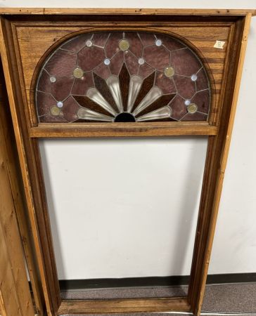 Vintage Stained Leaded Glass Window Panel, Glass can be removed, 14"h., 27"w. Vintage Stained Leaded Glass Window Panel, Glass can be removed, 14"h., 27"w.