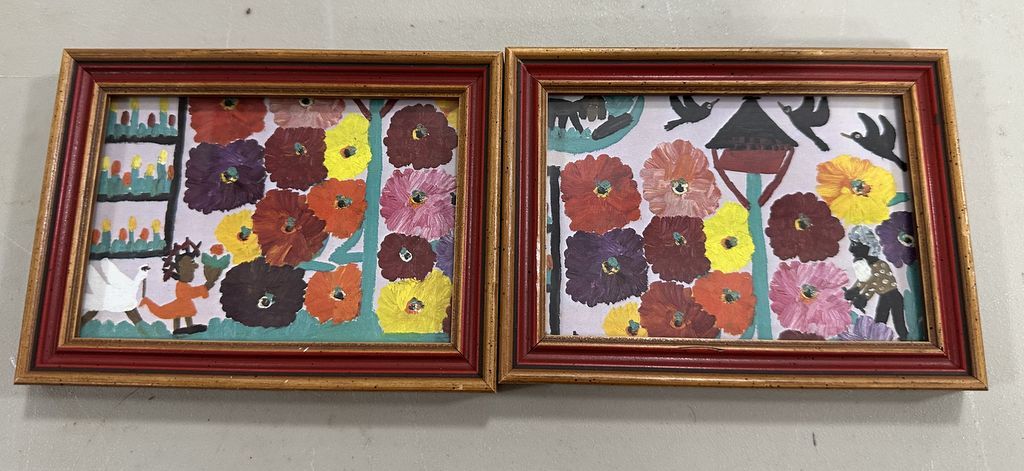 Two Clementine Hunter Prints, 4"h., 6"w, Location Back Metal Shelves Two Clementine Hunter Prints, 4"h., 6"w, Location Back Metal Shelves