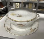 554 Czech Gold and White Porcelain Tureen and Underplate