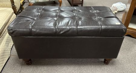 Modern Vinyl Storage Trunk, lift top, footed, button tufted, light wear, 19"h., 36"w. Modern Vinyl Storage Trunk, lift top, footed, button tufted, light wear, 19"h., 36"w.