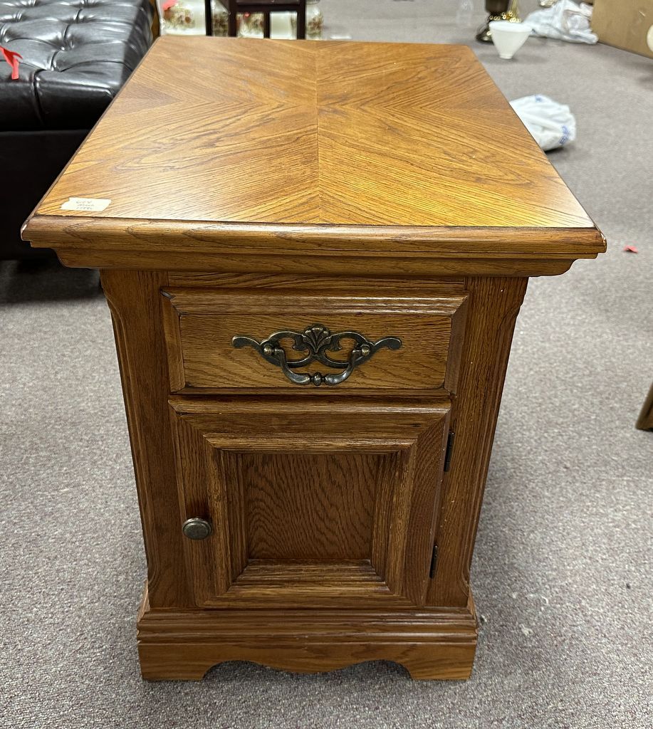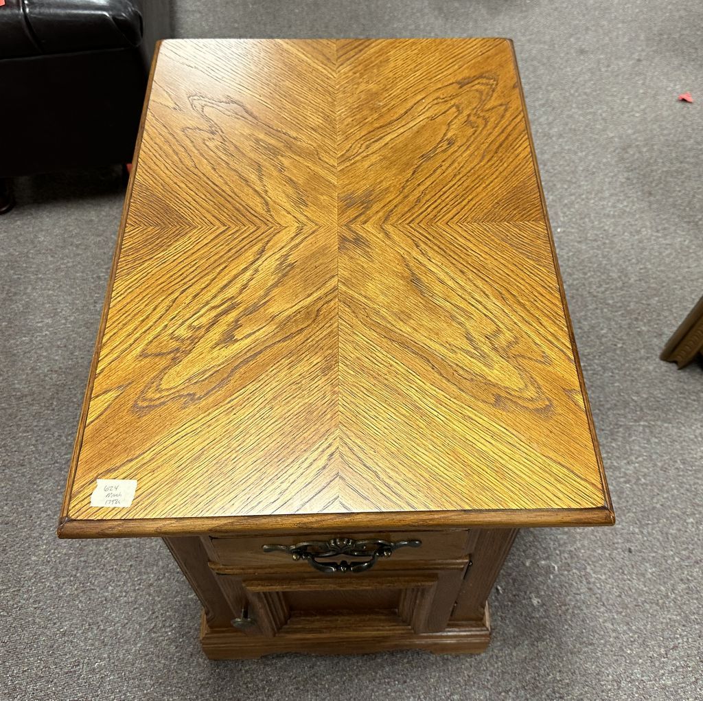 20th Century Oak Side Table, single drawer and door, 25"h., 18"w. 20th Century Oak Side Table, single drawer and door, 25"h., 18"w.