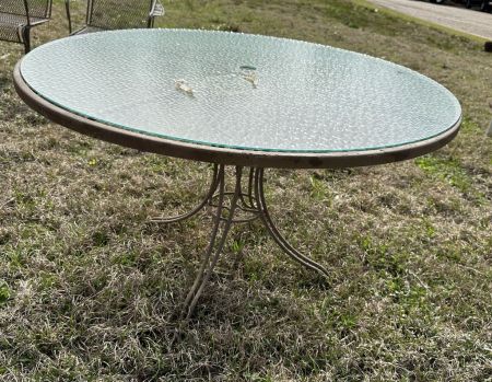 636 Large Glass Top Metal Outdoor Table