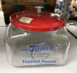Tom's Toasted Peanut Glass Container, 7"h, Location Right Metal Shelves Tom's Toasted Peanut Glass Container, 7"h, Location Right Metal Shelves