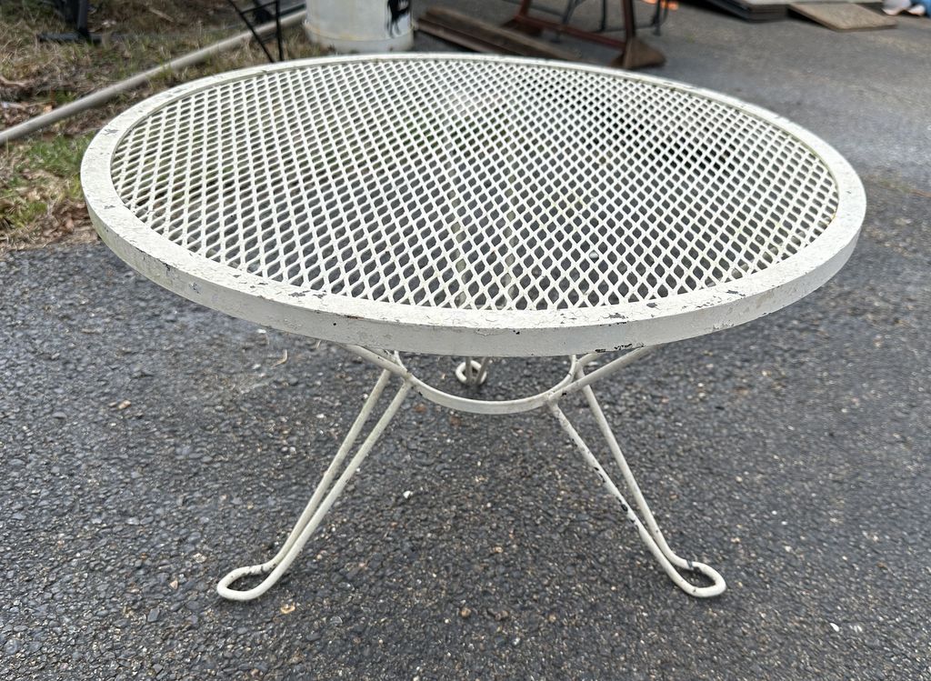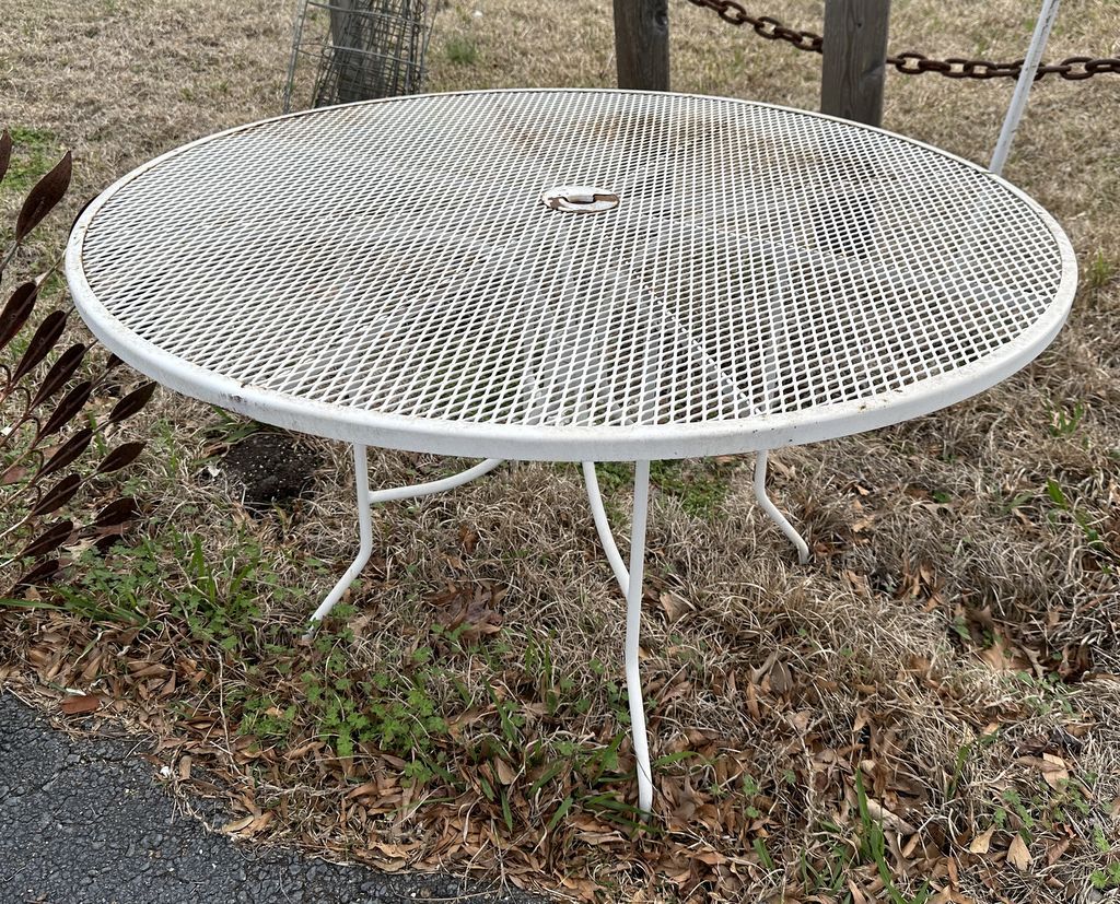 White Iron Outdoor Patio Table, light wear. White Iron Outdoor Patio Table, light wear.