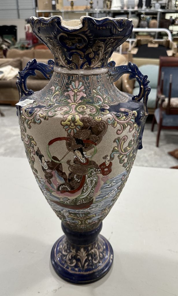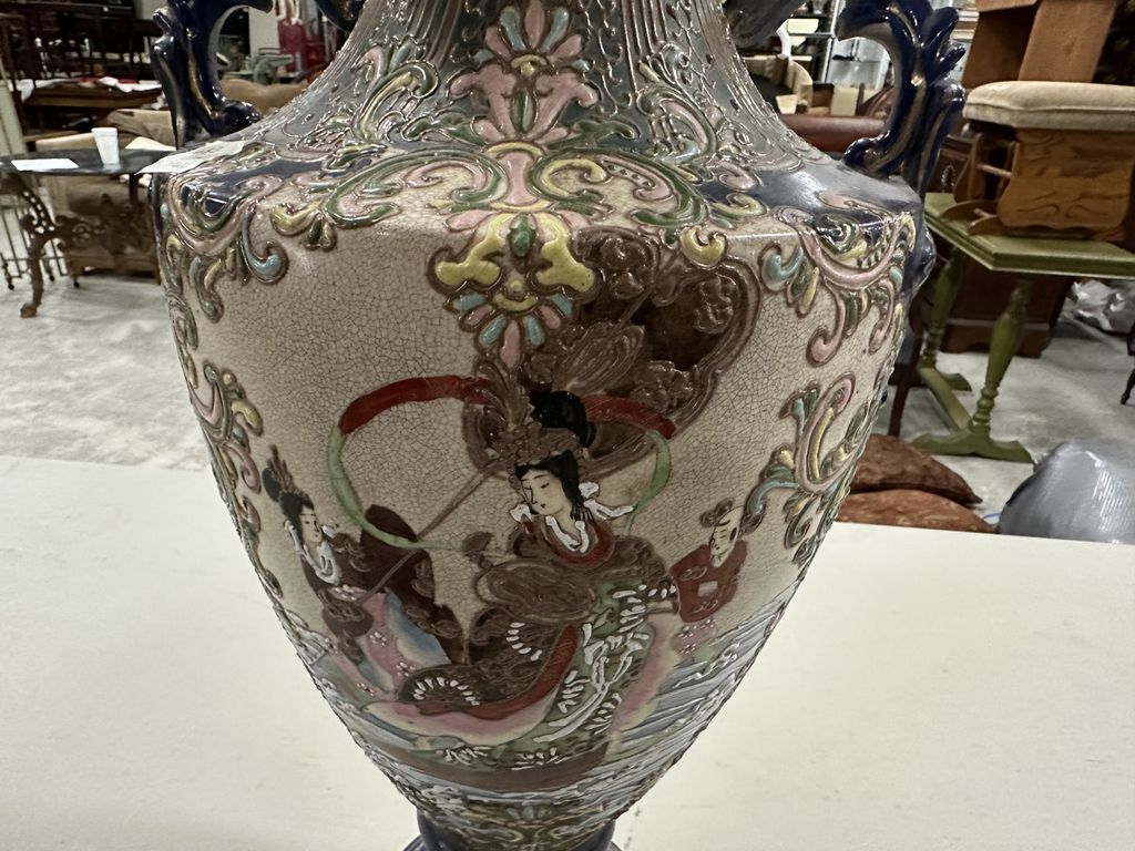 Large Asian Hand Painted Porcelain Vase, 23"h, Location Right Metal Shelves Large Asian Hand Painted Porcelain Vase, 23"h, Location Right Metal Shelves