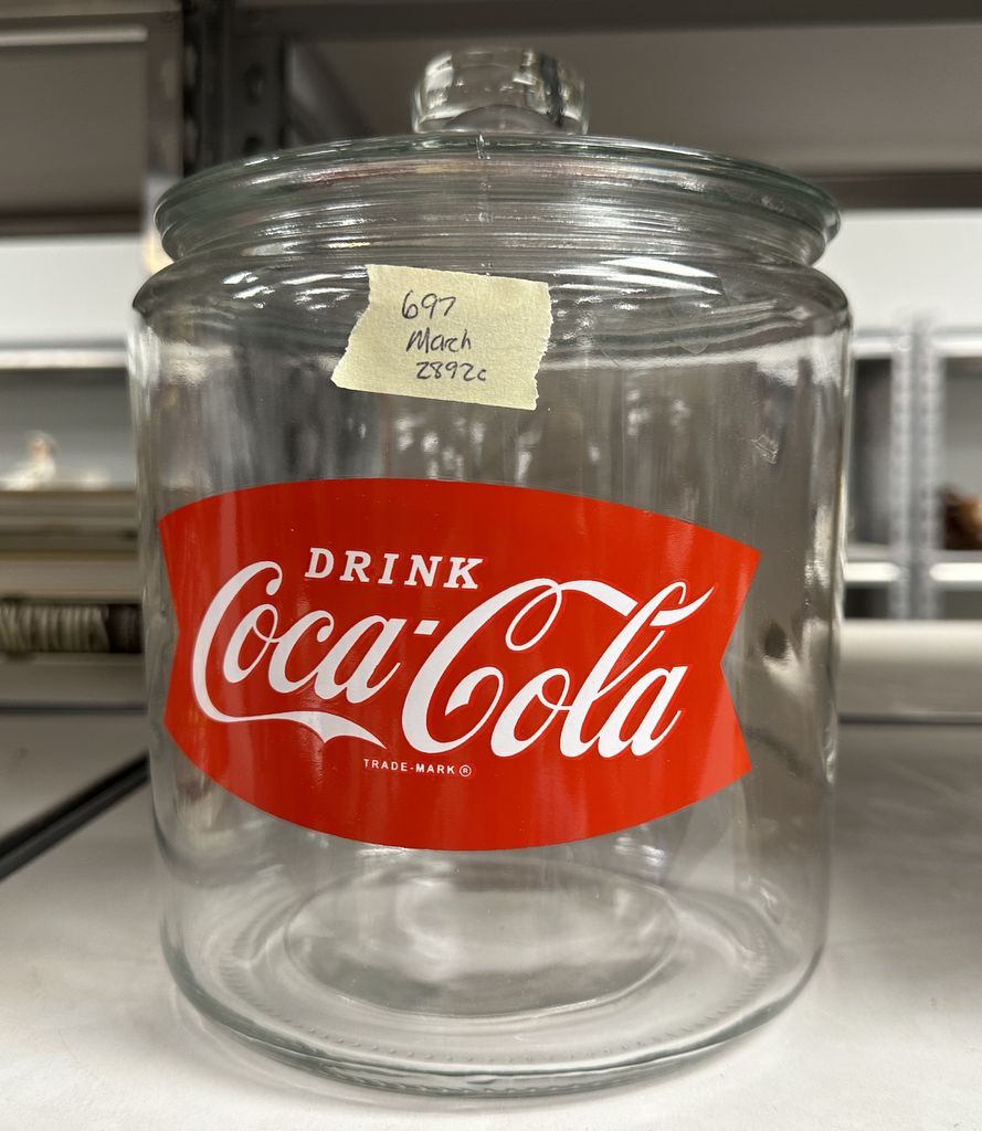 Vintage Coca Cola Glass Jar, 9"h, Location Right Metal Shelves Vintage Coca Cola Glass Jar, 9"h, Location Right Metal Shelves