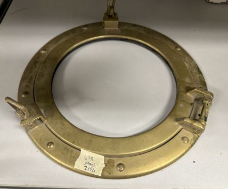 Antique Brass Port Hole Frame, Location Right Metal Shelves Antique Brass Port Hole Frame, Location Right Metal Shelves
