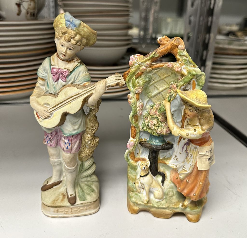 Japan Ceramic Guitar Player and Ceramic Flower Vase, flower vase has base crack, Location Right Metal Shelves Japan Ceramic Guitar Player and Ceramic Flower Vase, flower vase has base crack, Location Right Metal Shelves