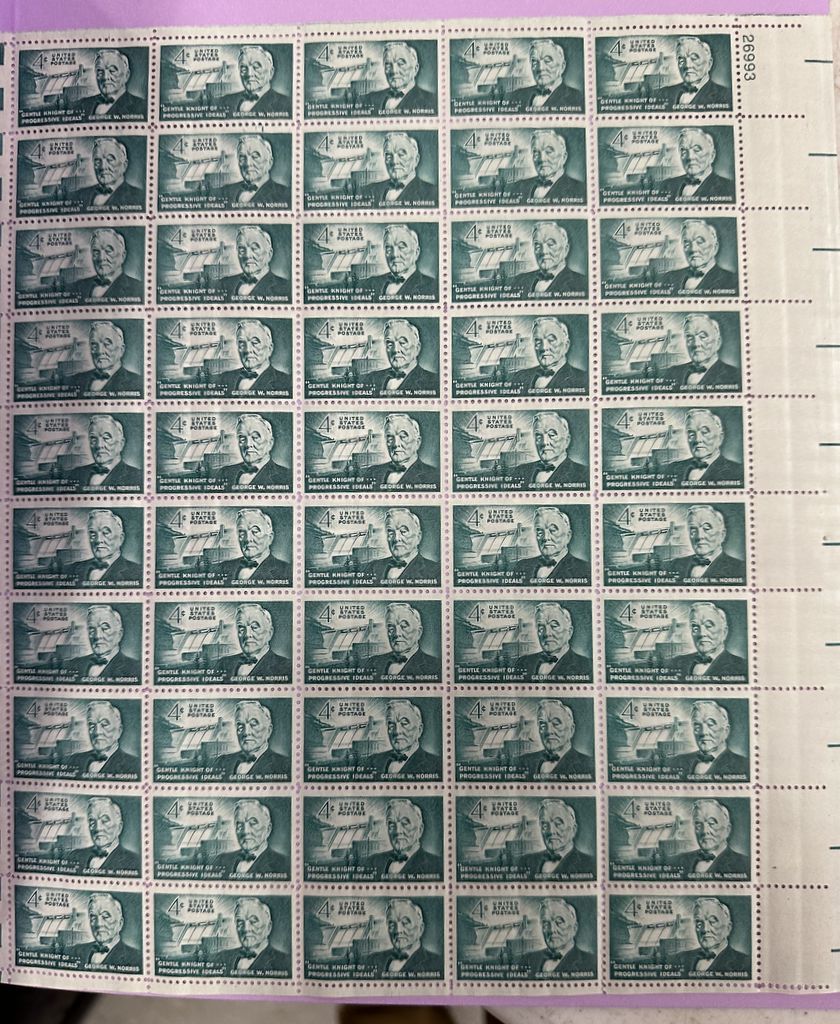 George W. Norris 4 Cent Stamp Sheet, Location Left Office 1 George W. Norris 4 Cent Stamp Sheet, Location Left Office 1