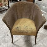 Vintage Wicker Club Chair, aged wear, Location Left Office 1 Vintage Wicker Club Chair, aged wear, Location Left Office 1