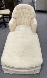 Vintage Upholstered Lounger, needs cleaning. Location Row 1 Vintage Upholstered Lounger, needs cleaning. Location Row 1