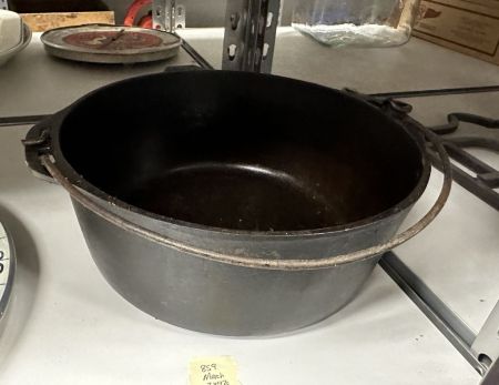 Vintage Cast Iron Cooking Kettle, Location Right Metal Shelves Vintage Cast Iron Cooking Kettle, Location Right Metal Shelves