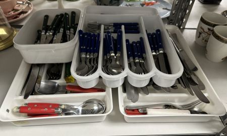 3 Sets of Kitchen Flatware, Location Right Metal Shelves 3 Sets of Kitchen Flatware, Location Right Metal Shelves