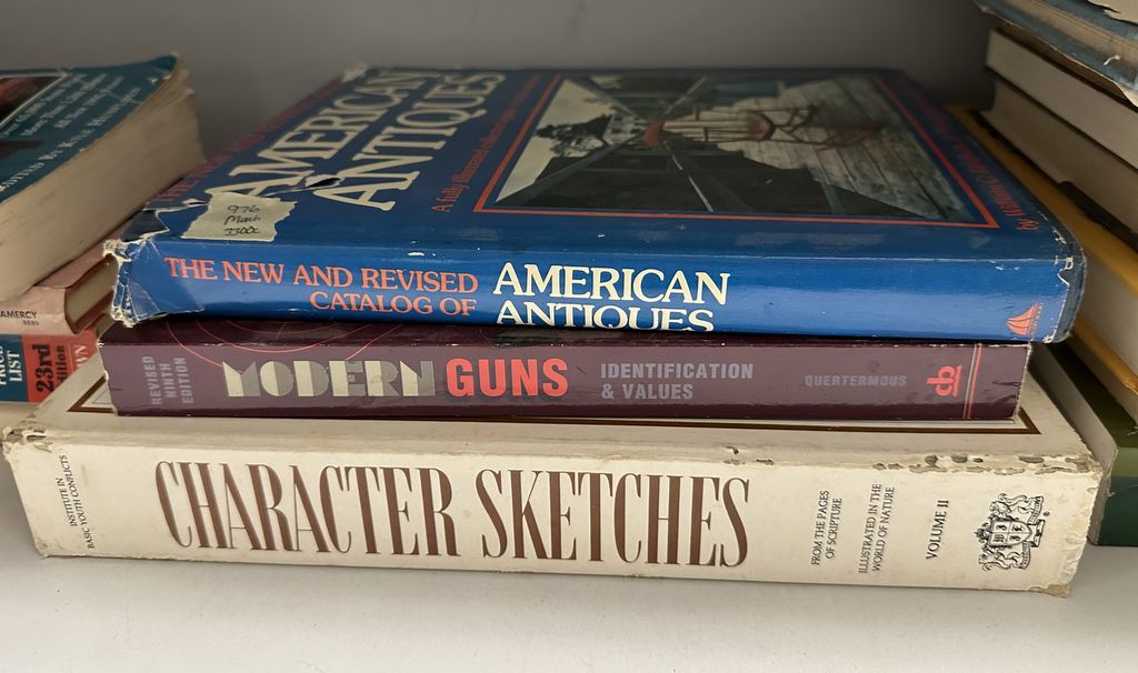 American Antiques, Guns, Character Sketches, Location Right Metal Shelves American Antiques, Guns, Character Sketches, Location Right Metal Shelves