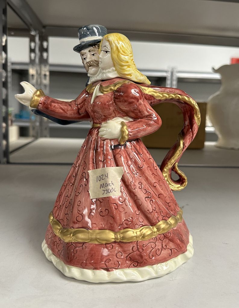 Taiwan Ceramic Gent and Lady Pitcher, Location Right Metal Shelves Taiwan Ceramic Gent and Lady Pitcher, Location Right Metal Shelves