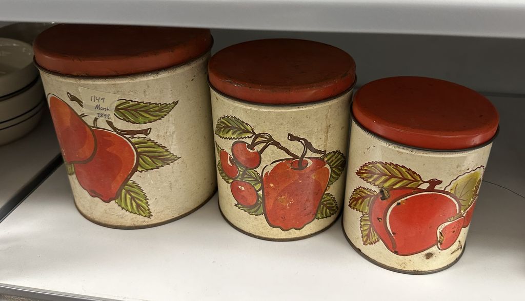 1149 Set of 3 Vintage Metal Canisters