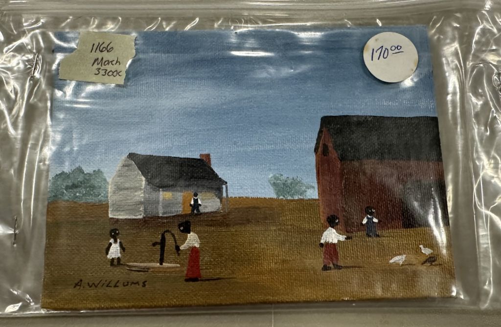 Alphonso Willums "Chicken Feed" Painting, 4" x 6", unframed, African American Folk Artist Alphonso Willums, Born in Maryland, Location Left Office 1 Alphonso Willums "Chicken Feed" Painting, 4" x 6", unframed, African American Folk Artist Alphonso Willums, Born in Maryland, Location Left Office 1