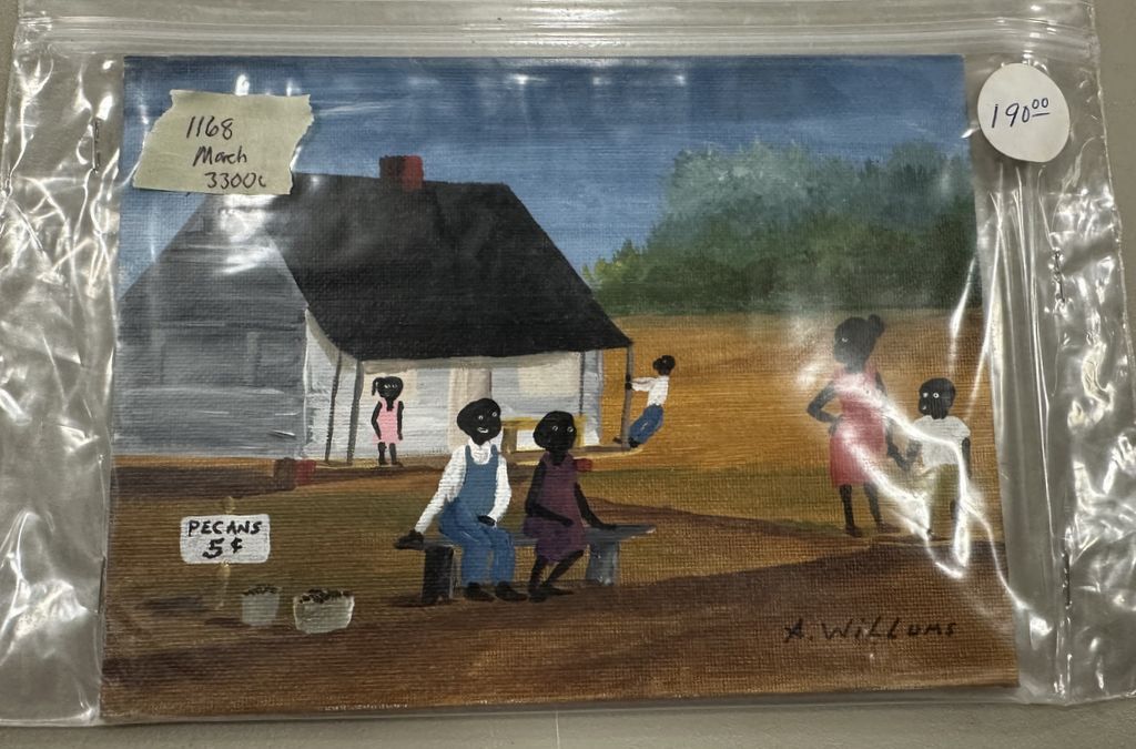 Alphonso Willums "Pecan Stand" Painting, 4" x 6", unframed, African American Folk Artist Alphonso Willums, Born in Maryland, Location Left Office 1 Alphonso Willums "Pecan Stand" Painting, 4" x 6", unframed, African American Folk Artist Alphonso Willums, Born in Maryland, Location Left Office 1