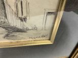 Marie Hull Signed Sketch Studying Drawing, signed lower right corner with title, matted, frame is 22"h., 19"h., good condition Marie Hull Signed Sketch Studying Drawing, signed lower right corner with title, matted, frame is 22"h., 19"h., good condition
