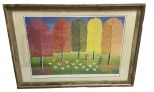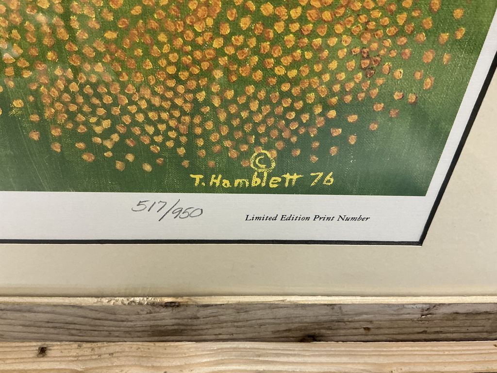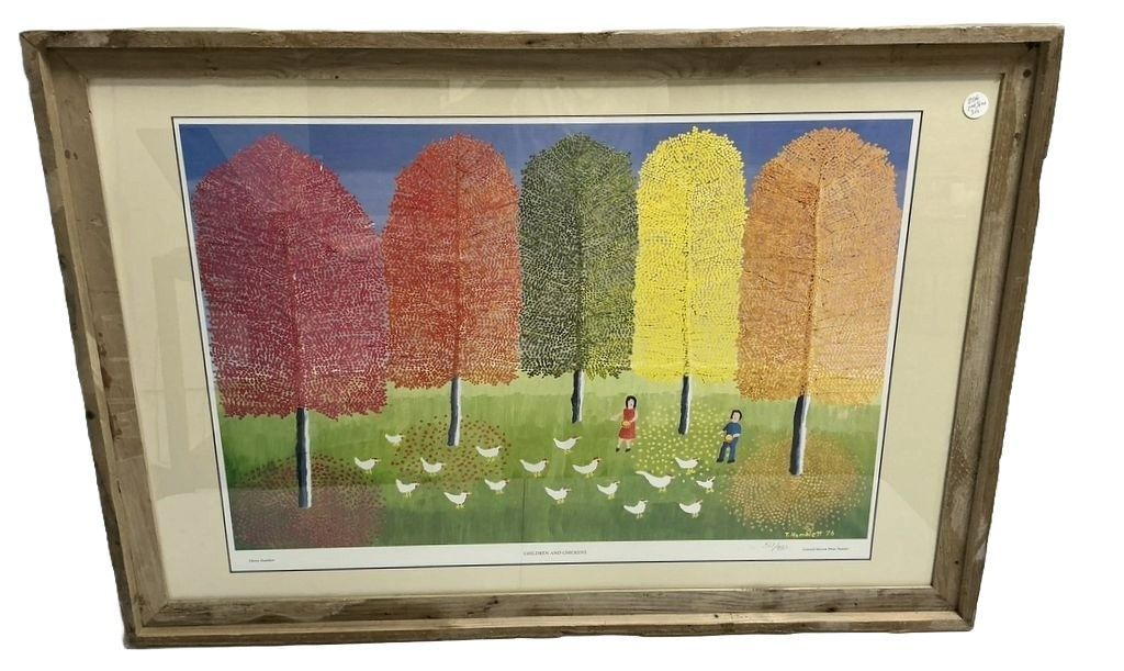 Theora Hamblett Children and Chickens Limited Edition Print 517/950, limited print number, matted, framed, 28"h., 39"w Theora Hamblett Children and Chickens Limited Edition Print 517/950, limited print number, matted, framed, 28"h., 39"w