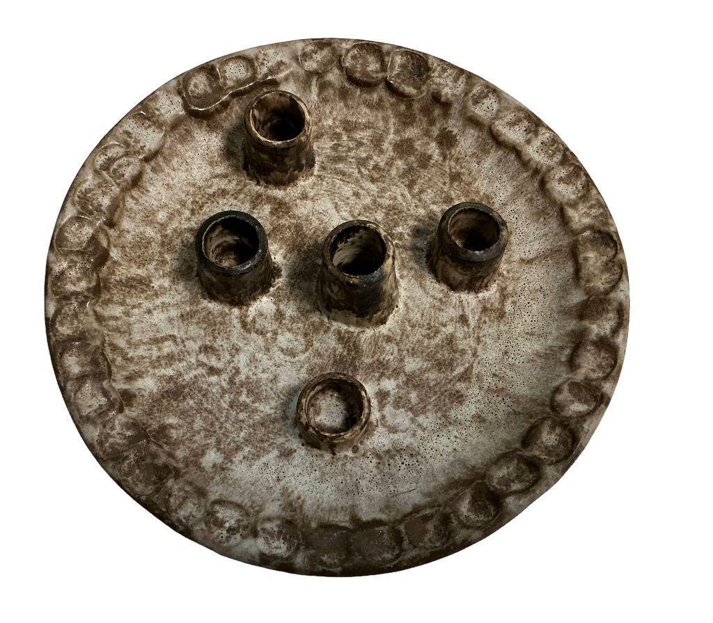 VTG McCarty Five Pipe Candle Plate, nutmeg, signed McCarty, good condition, 9 1/2"dia, Location Front Shelves VTG McCarty Five Pipe Candle Plate, nutmeg, signed McCarty, good condition, 9 1/2"dia, Location Front Shelves