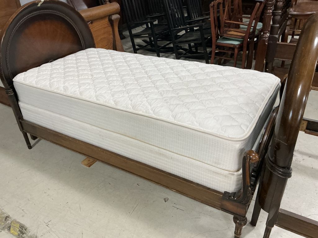 Pair of French Mahogany Twin Beds, early-mid 20th century, one has a mattress set Pair of French Mahogany Twin Beds, early-mid 20th century, one has a mattress set