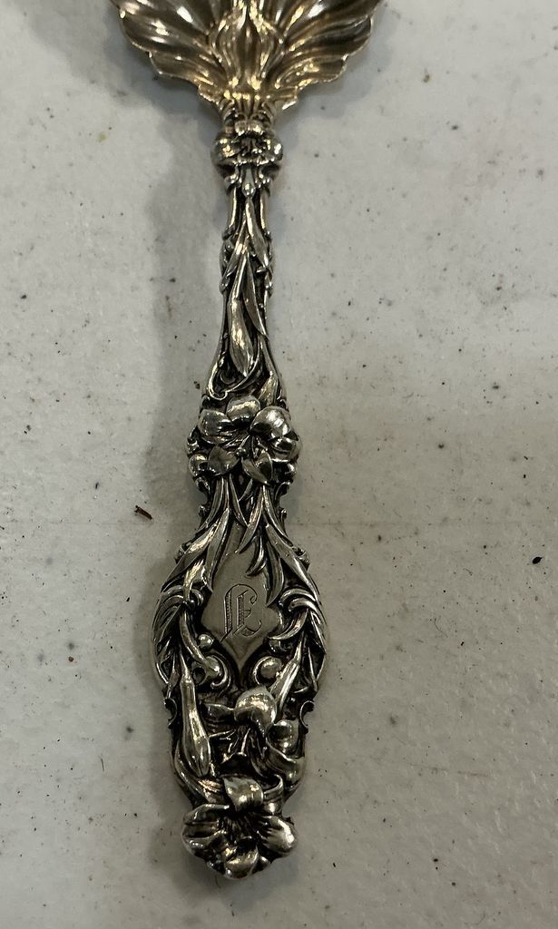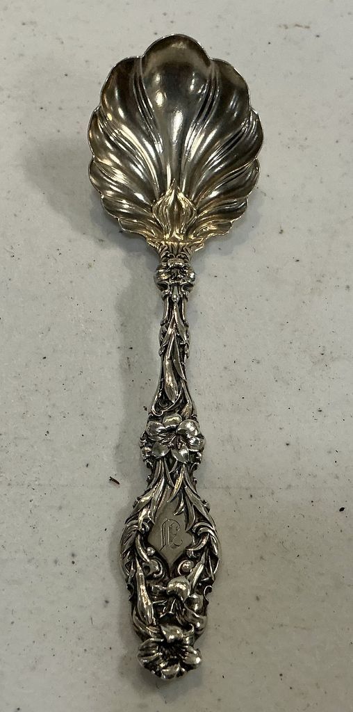 5.5", 1.140 ozt STERLING SILVER BERRY SPOON "LILY" WHITING, monogrammed, Location Front Shelves 5.5", 1.140 ozt STERLING SILVER BERRY SPOON "LILY" WHITING, monogrammed, Location Front Shelves