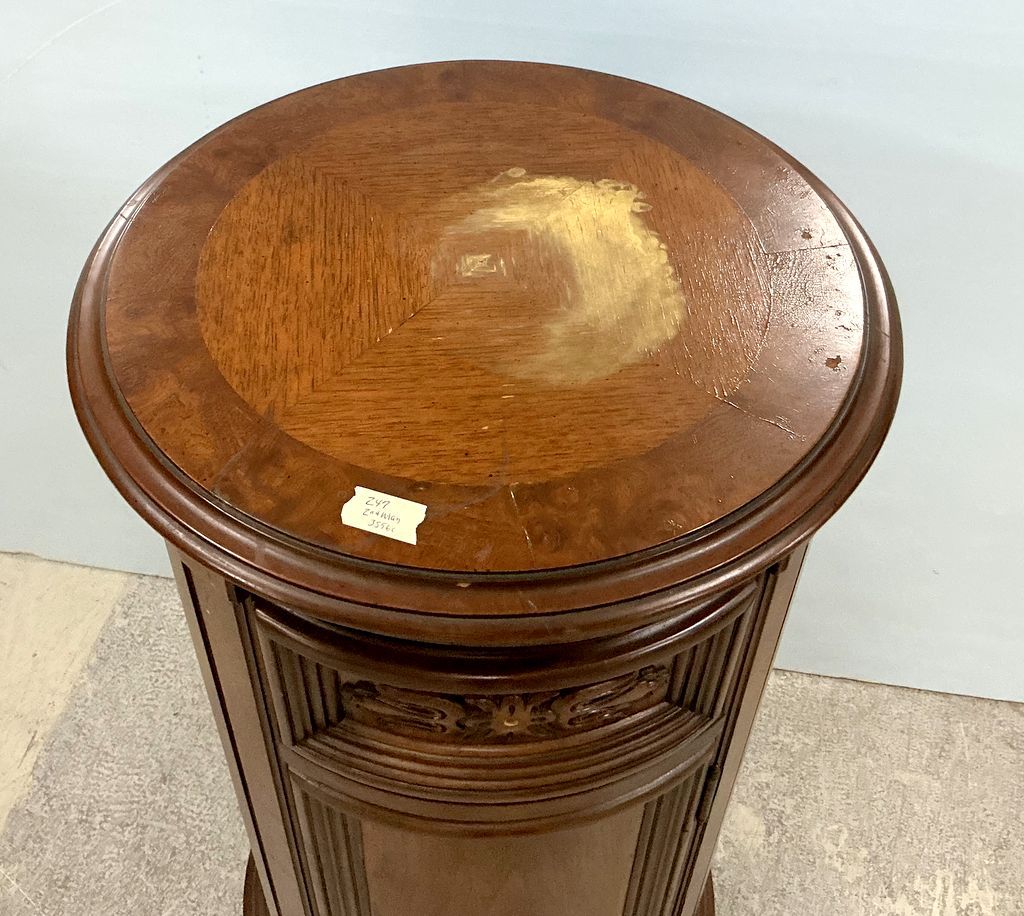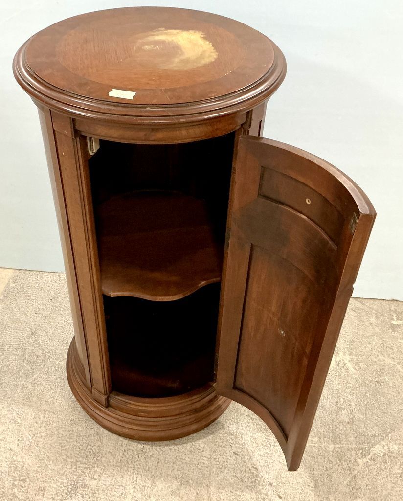 36"h., 20"dia 20th Century Traditional Cylinder Stand, worn spot on top, single door 36"h., 20"dia 20th Century Traditional Cylinder Stand, worn spot on top, single door