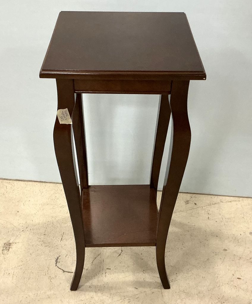 Modern Cherry Side Table 28"h., 12"w., two tier. Modern Cherry Side Table 28"h., 12"w., two tier.
