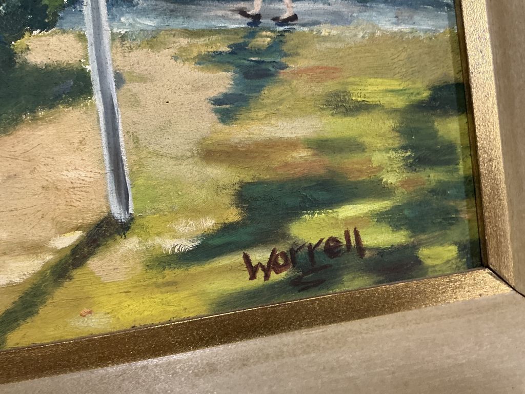 Worrell 23”h, 28”w Painting on Board, Location Back Metal SHelves Worrell 23”h, 28”w Painting on Board, Location Back Metal SHelves