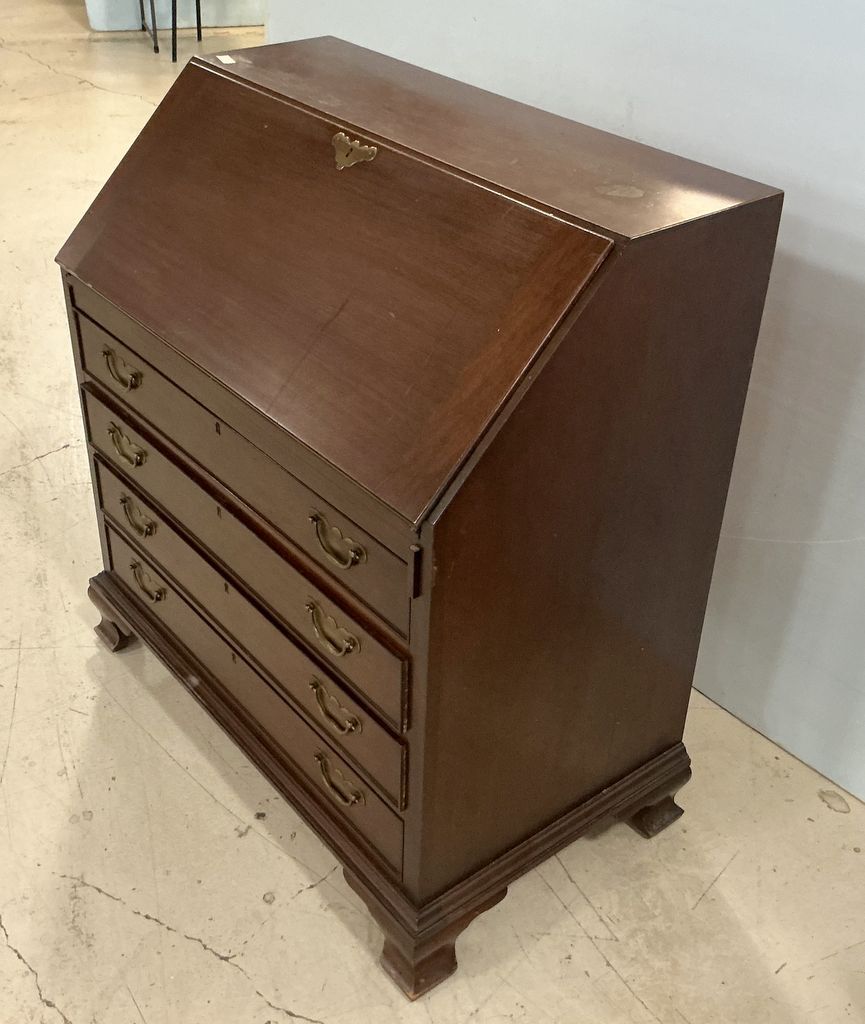 Maddox Tables Co. American Federal Style Slant Bureau Desk 40h 36w 20d, light wear Maddox Tables Co. American Federal Style Slant Bureau Desk 40h 36w 20d, light wear