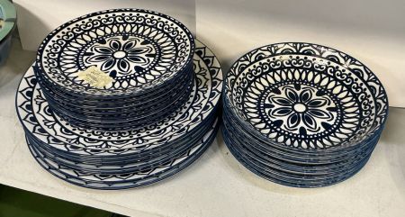 Blue & White Medallion Dinnerware Set, Location Front Shelves Blue & White Medallion Dinnerware Set, Location Front Shelves