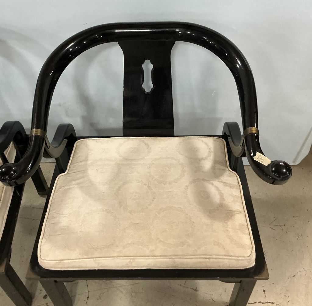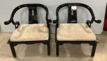 386 Pair of Black Lacquer and Linen Asian Style Lounge Chairs