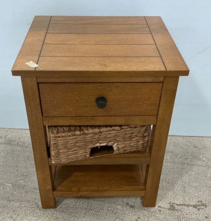 Modern Side Table with Storage Shelves 24h 18w, single drawer, particle style wood. Modern Side Table with Storage Shelves 24h 18w, single drawer, particle style wood.