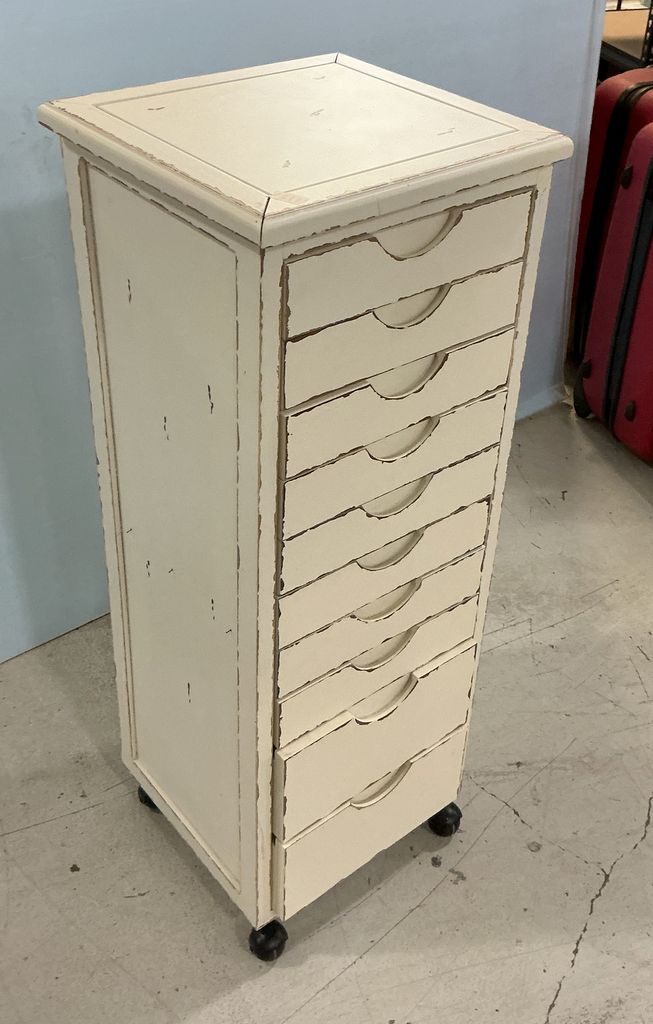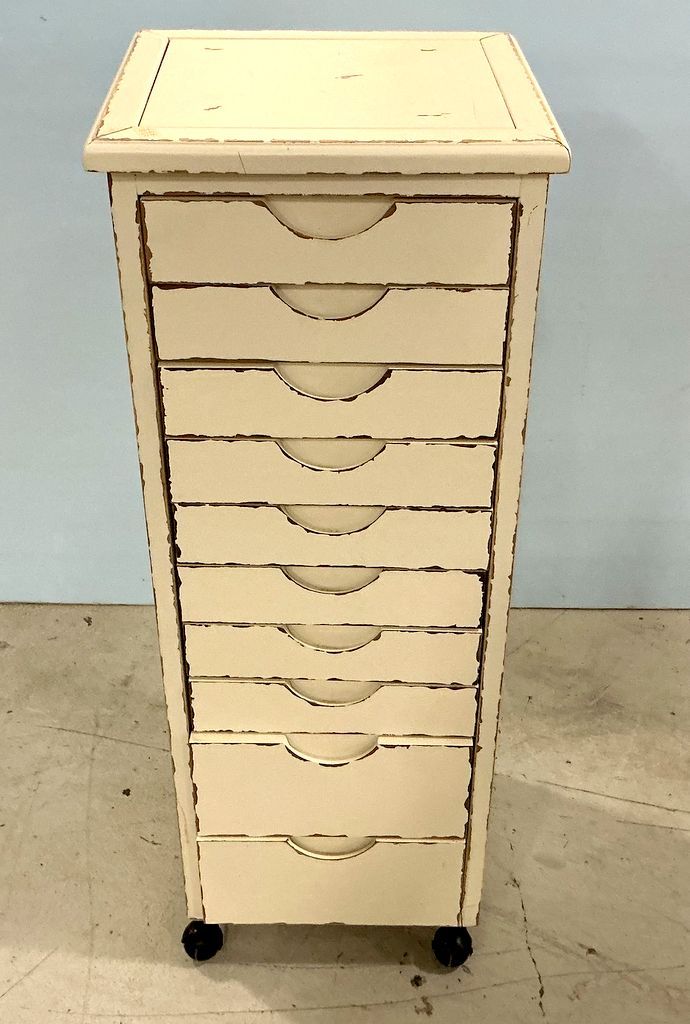 Modern Distressed White Art Cabinet 43h 16w 14d, on wheels Modern Distressed White Art Cabinet 43h 16w 14d, on wheels