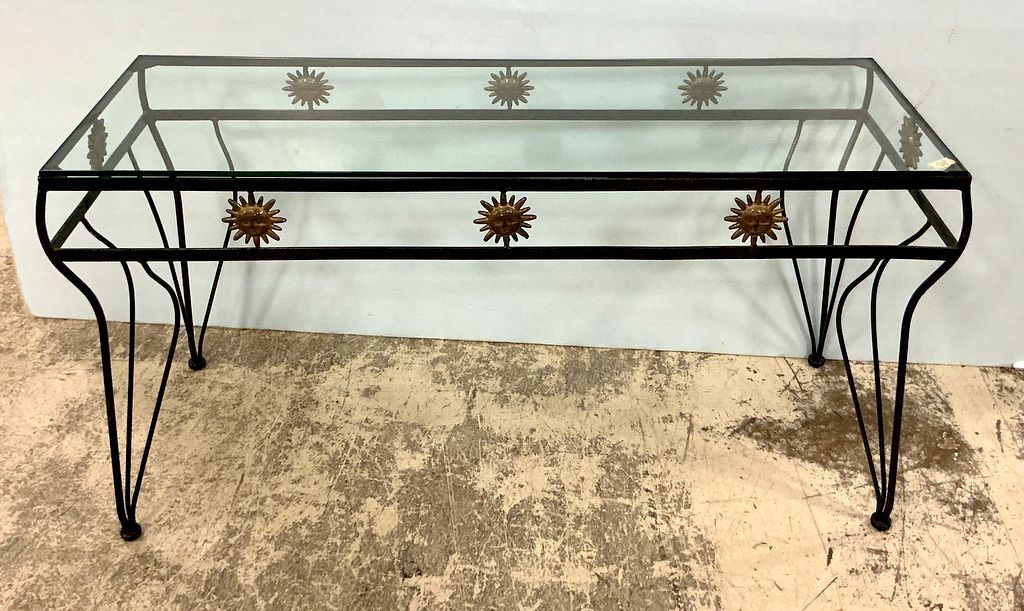 Iron Sun Design Foyer/Sofa Table 28h 50w 18d, glass top Iron Sun Design Foyer/Sofa Table 28h 50w 18d, glass top