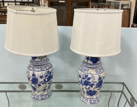458 Pair of Blue and White Ceramic Ginger Jar Lamps 28h