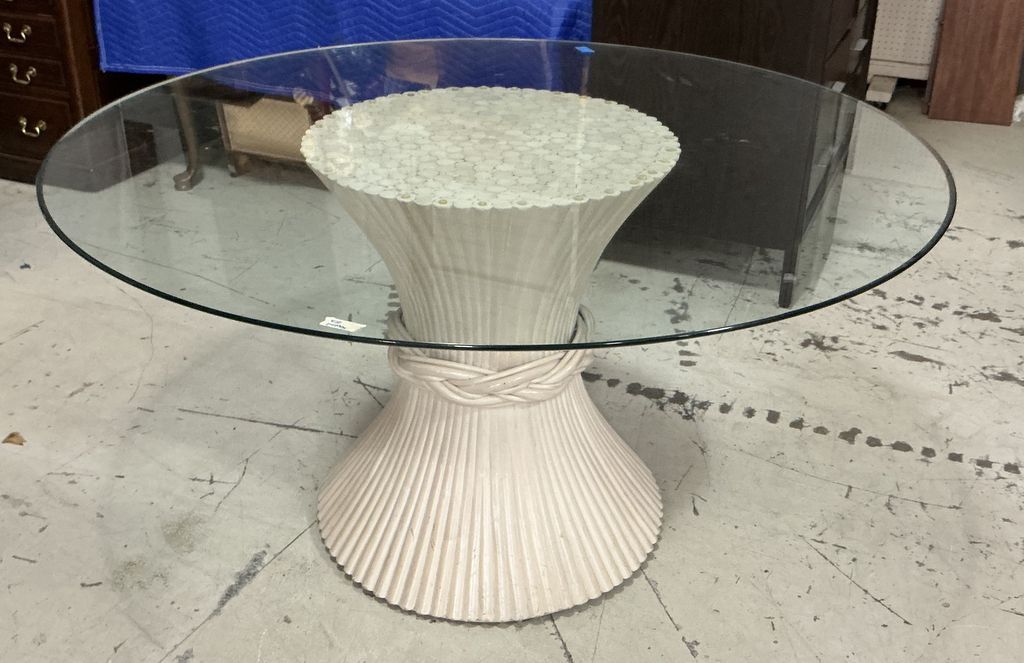 29h 54dia Bamboo Sheaf of Wheat Dining Table, round glass top 29h 54dia Bamboo Sheaf of Wheat Dining Table, round glass top