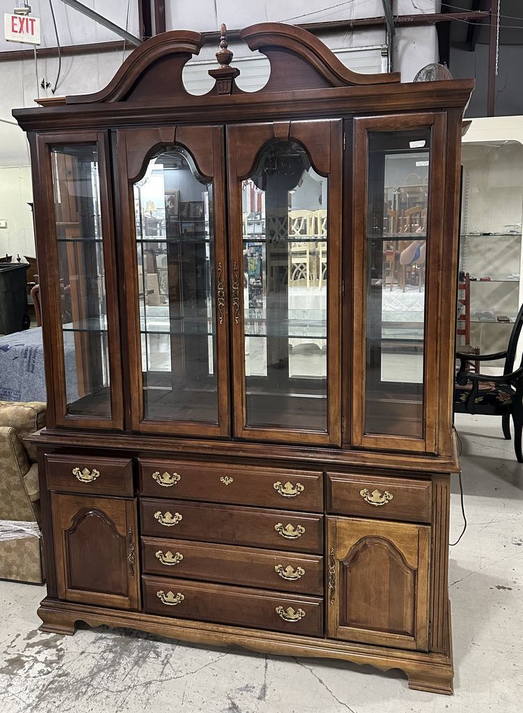 20th Century Traditional Cherry China Cabinet, two piece, 88”h, 63”w Location Row 6 20th Century Traditional Cherry China Cabinet, two piece, 88”h, 63”w Location Row 6