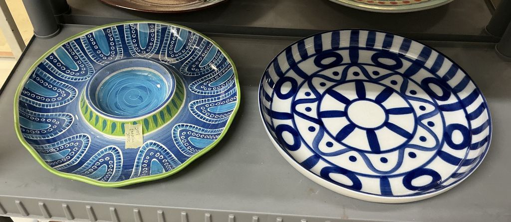 13dia Dansk Arabesque Dinner Plate and Chip n Dip, Location Front Shelves 13dia Dansk Arabesque Dinner Plate and Chip n Dip, Location Front Shelves