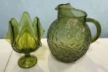 647 Anchor Hocking Glass Ball Pitcher and Viking Green Stretch Glass Footed Bowl Compote