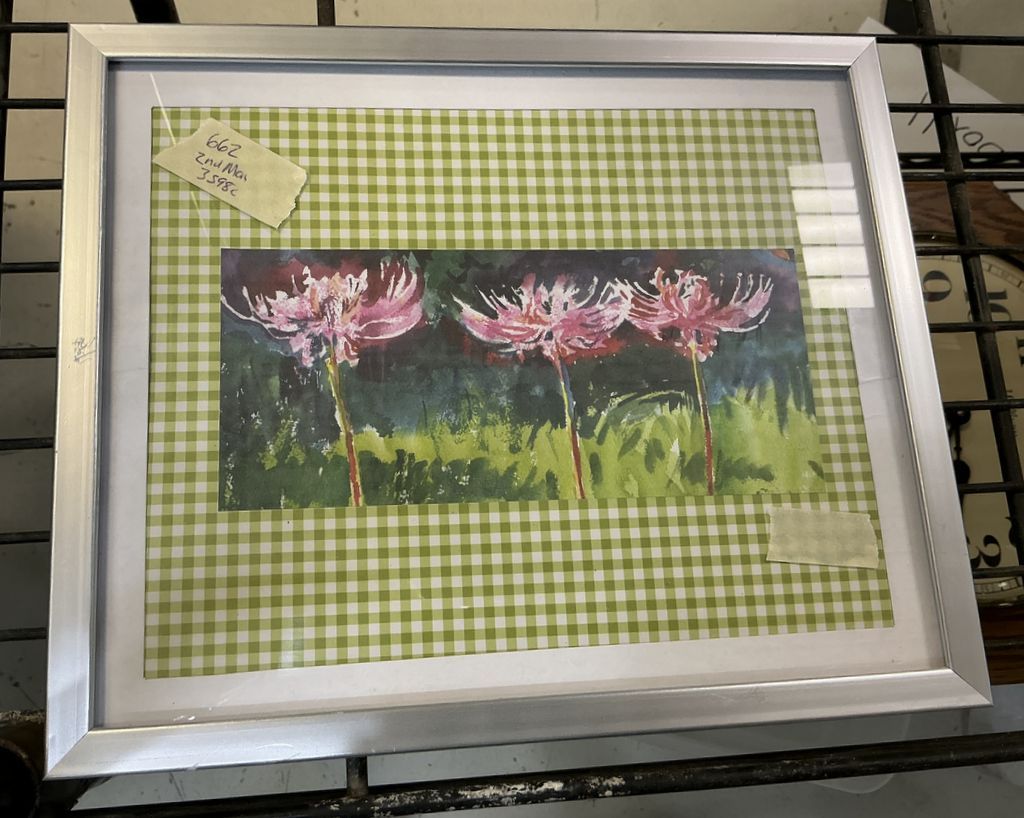 10h 12w Framed Watercolor of Flowers, Location Front Shelves 10h 12w Framed Watercolor of Flowers, Location Front Shelves