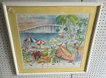 Signed D Burgers Destin Holiday Isle Print, 26"h., 26"w. Location by Front Door Signed D Burgers Destin Holiday Isle Print, 26"h., 26"w. Location by Front Door