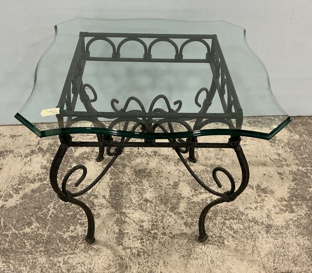 668 21"h., 24"w. Contemporary Metal Base Glass Lamp Table