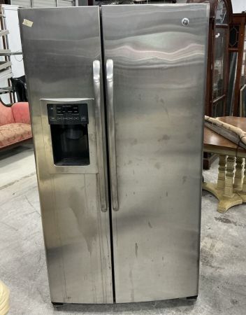 GE Stainless Side by Side Refrigerator, working condition, needs cleaning GE Stainless Side by Side Refrigerator, working condition, needs cleaning