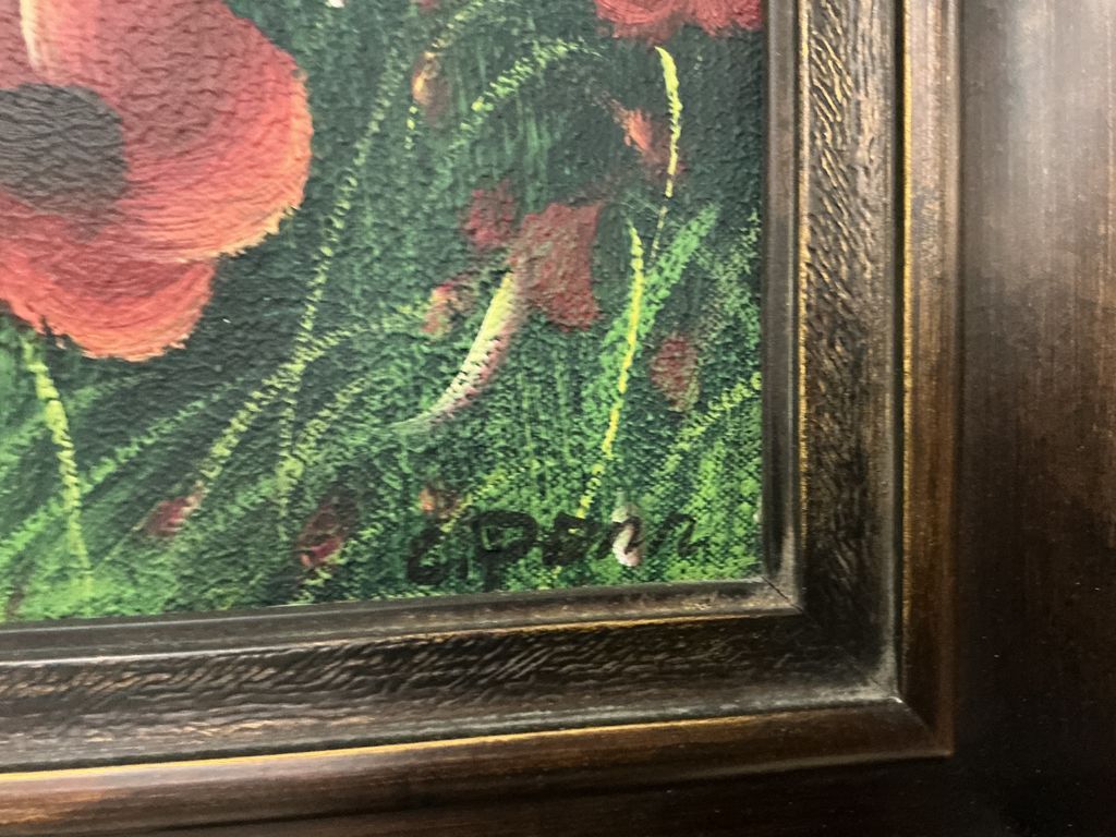 Painting of Poppies by Penn Framed 26"h., 30"w, Location Right Wall Painting of Poppies by Penn Framed 26"h., 30"w, Location Right Wall