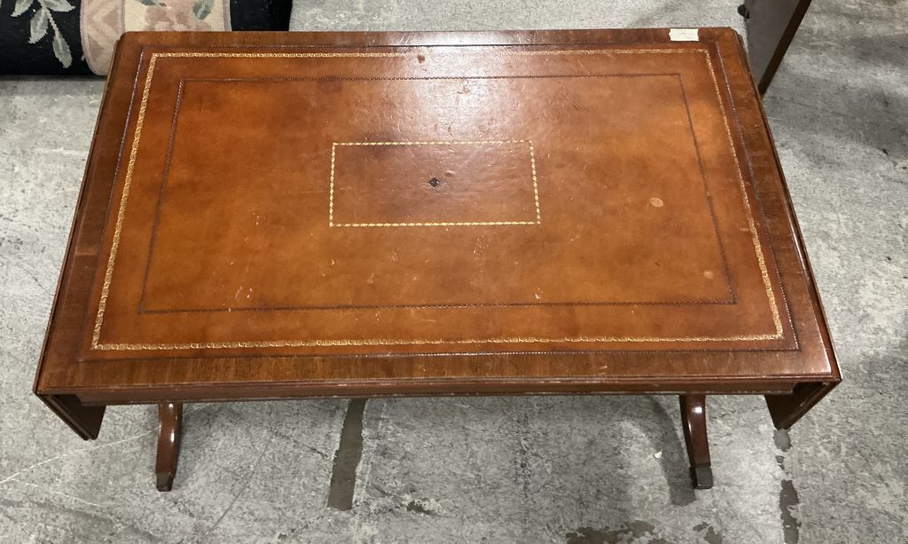 792 Vintage Coffee Table with Leather Top 19h 37w