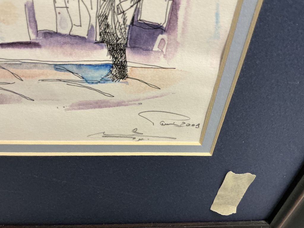 Signed pen drawing of Notre Dame 23h 18w, matted, framed, Location Front Shelves Signed pen drawing of Notre Dame 23h 18w, matted, framed, Location Front Shelves